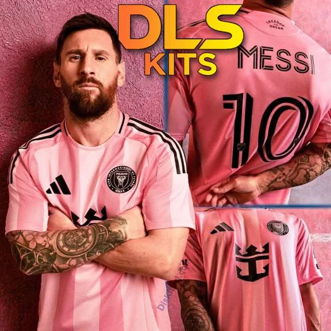 These are the new DLS 26 Inter Miami 2025/26 Kits based on the pink base with bicolor stripes of two shades of pink. These stripes are Messi’s favourite, inspired by Barcelona and Argentina’s main Home Kit. Lionel Messi was featured on the club’s Social Media announcing the kit launch.